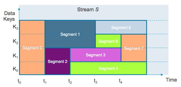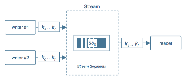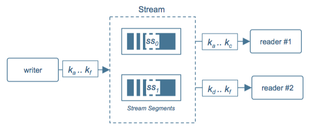 In real life, we end up somewhere in between – likely shifting over time as our data sources and apps evolve. While a stream would be comprised internally of multiple segments, (a) writers are unaware of the segment topology as they just know about keys, and (b) readers learn the segment topology dynamically – just point them at a stream and go.