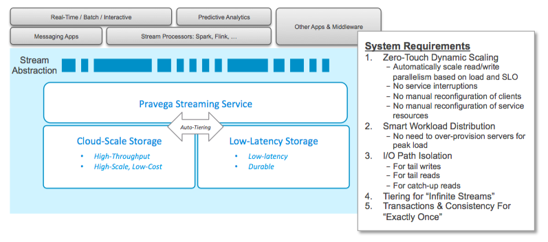 The storage requirements for exactly once are clear: streams must be durable, ordered, consistent, and transactional. These are critical attributes because they are the most difficult aspects of storage system design. You can’t change them later without a major redesign.